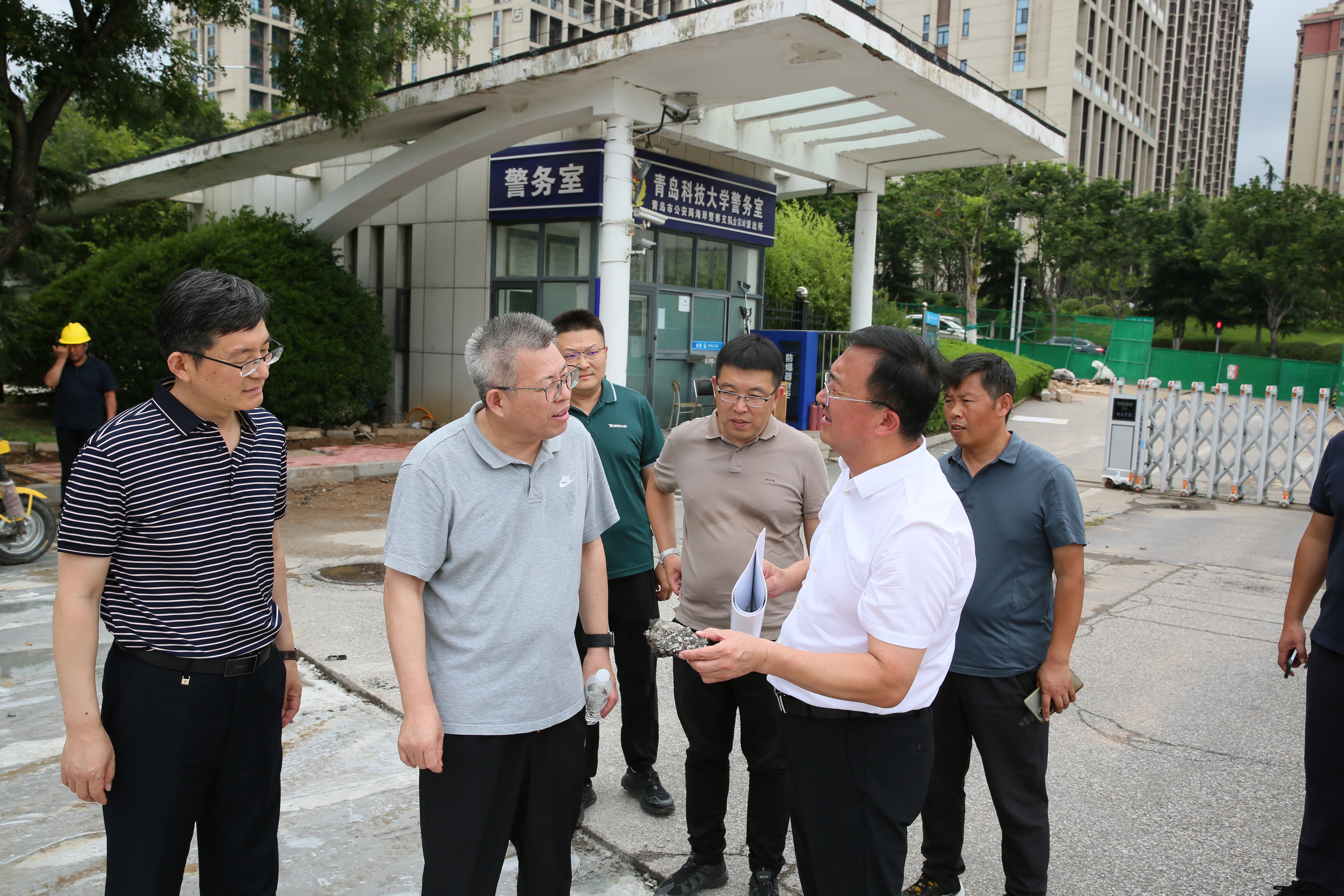 8月1日、3日,学校党委书记杨天梅赴崂山、四方、高密三校区,实地调研指导暑期校园基础设施更新改造施工情况,并看望慰问奋战在一线的工作人员。